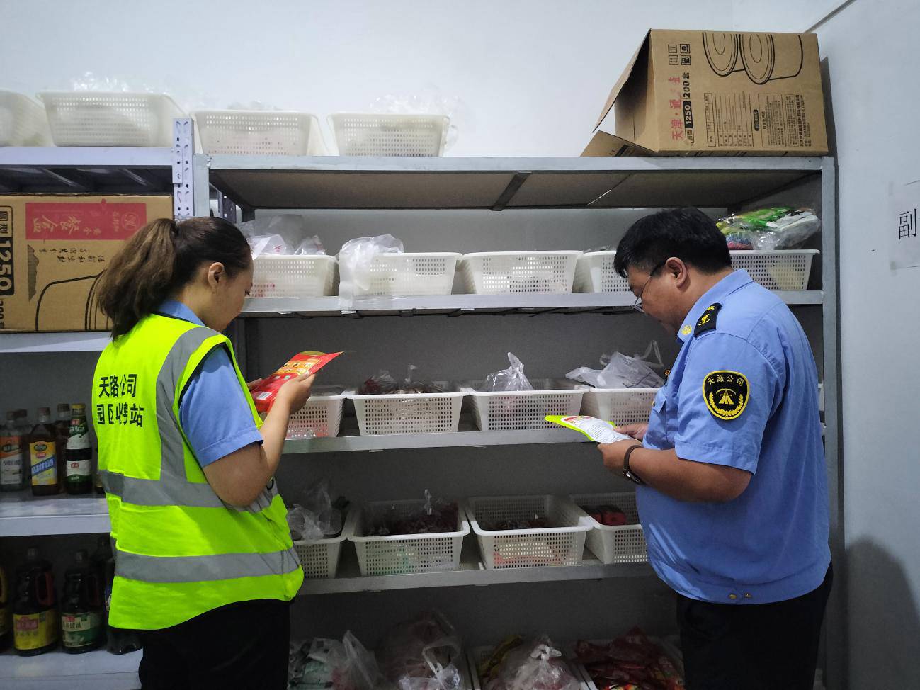 此次检查由值班站长梁宏伟带领相关人员组成专项检查小组,主要针对从业人员健康情况、厨房、餐厅卫生情况、食材加工卫生、库房食材储存情况等进行无死角的隐患排查。并对检查出的安全隐患督促厨房工作人员逐一进行现场整改落实。检查过程中梁宏伟强调。一要严把食材采购关,要根据季节、就餐人数等按需、适量订购食材,从源头上避免食材因储存时间过长出现变质、浪费等情况。严格落实肉类食材索证索据要求,确保食材来源清晰、有源可塑,生熟食材要分类储存,避免混放出现交叉污染。二要严格操作流程,严格区分生熟食品加工案板刀具,使用后及时清洗晾晒,避免发生串味、霉变等情况。三要强化库房管理,对库房食材储存要做到分区、分类、离地存放,定期对库房储存食材保质期、储存状态等进行认真检查,同时做好库房防鼠、防潮等措施。