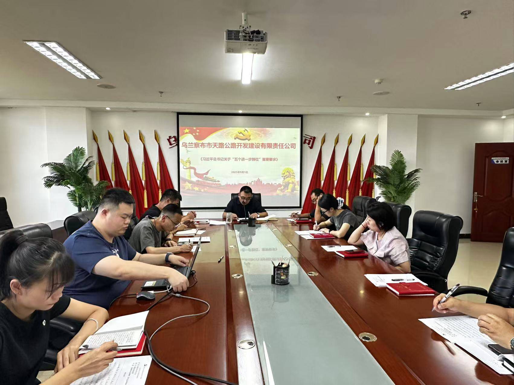 9月1日下午,天路公司党支部组织集中学习《习近平总书记关于“五个进一步到位”重要要求》。此次学习由党支部书记张毅强领学。班子成员及部室职工参加会议。