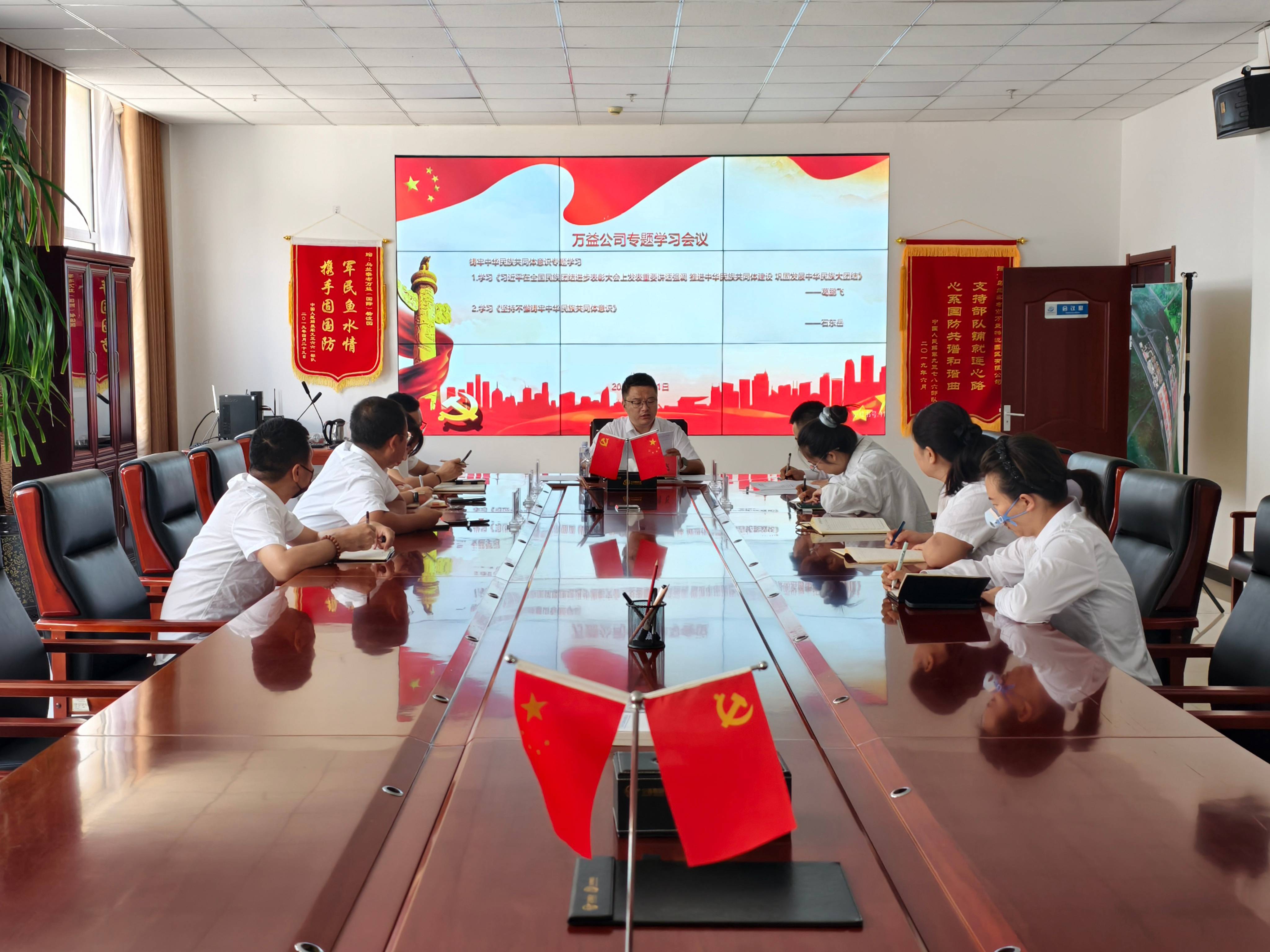 为深入贯彻落实习近平总书记关于加强和改进民族工作的重要思想,深刻领会铸牢中华民族共同体意识的重大意义与实践要求,万益公司于9月 11 日组织开展铸牢中华民族共同体意识专题学习,公司全体干部职工参加。