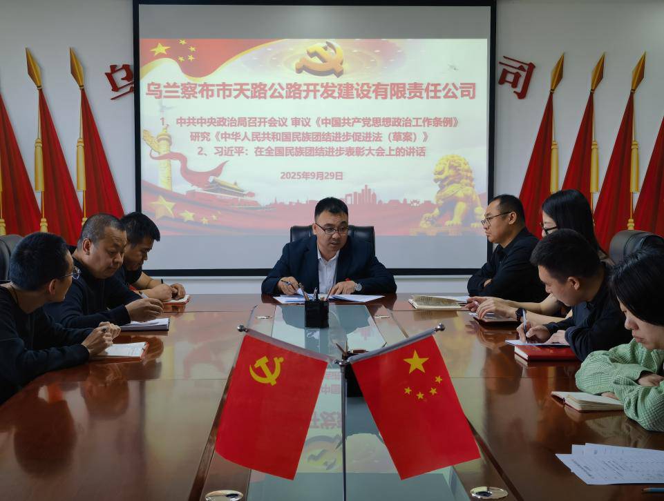 2025年9月29日,天路公司组织干部职工学习《习近平总书记在全国民族团结进步表彰大会上的重要讲话》精神。会议由公司党支部书记、经理张毅强主持。