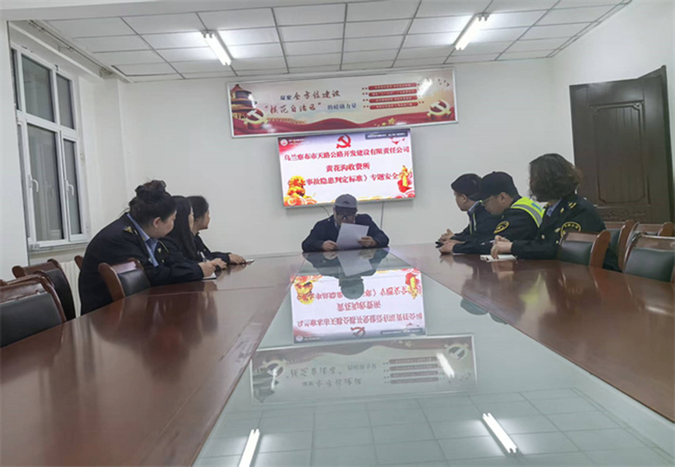 为落实安全生产要求,提升安全管理水平,精准识别防控重大安全风险,天路公司黄花沟收费所组织员工深入学习《公路运营领域重大事故隐患判定标准》。
