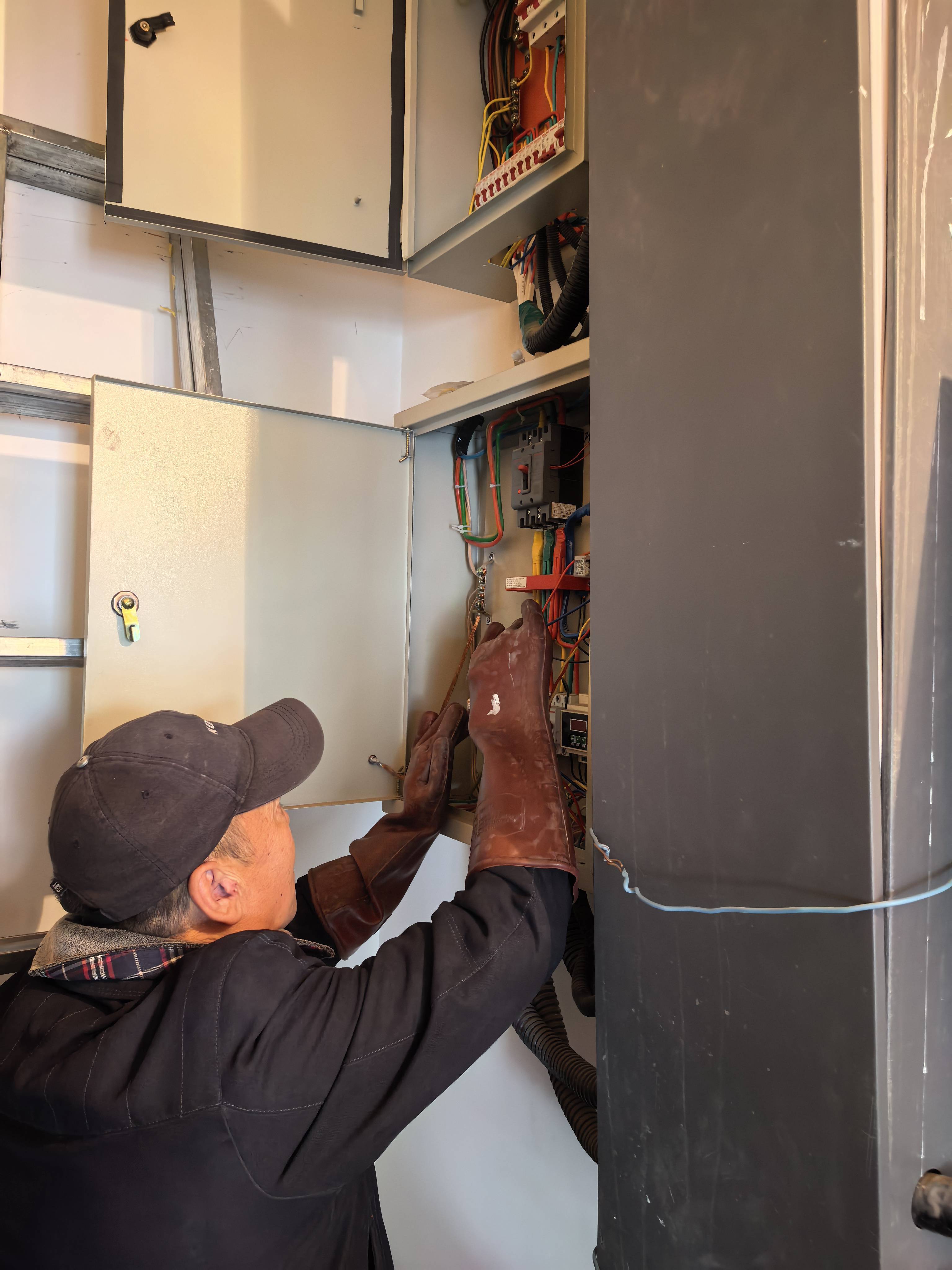 随着冬季来临,气温持续下降,用电负荷显著攀升,各类用电安全风险随之增大。为切实保障园区冬季用电安全,为园区入驻商户提供安全稳定的经营环境,万益公司于2025年11月26日由招商运营部组织专业电工团队对园区配电室、变压器、客户用电进行了全面排查和消除用电安全隐患,确保各类用电安全,保障万益公司及各入驻商户财产和员工生命安全。