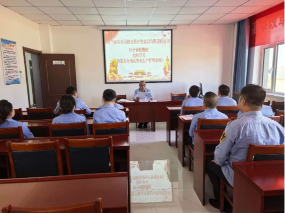 为深入贯彻落实安全生产相关措施,提高员工对法律法规条款的认知度,同时提升员工安全意识和应急处理能力,天路公司口子村收费站于近日由值班站长牵头组织站内员工开展《内蒙古自治区安全生产条例》专题学习活动。