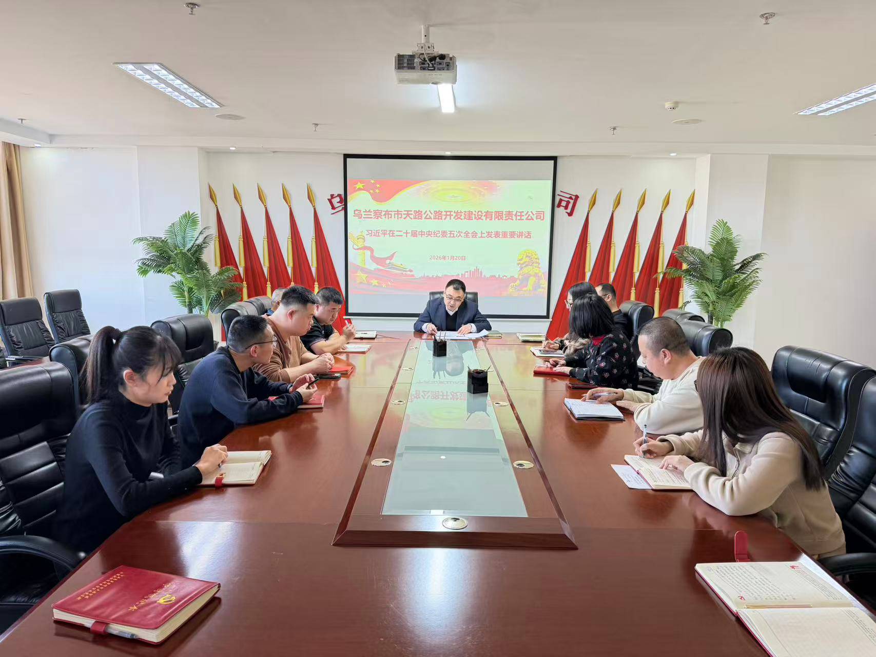2026年1月20日,天路公司党支部组织集中学习《习近平在二十届中央纪委五次全会上发表重要讲话》。此次学习由党支部书记张毅强领学,班子成员及部室职工参加学习。
