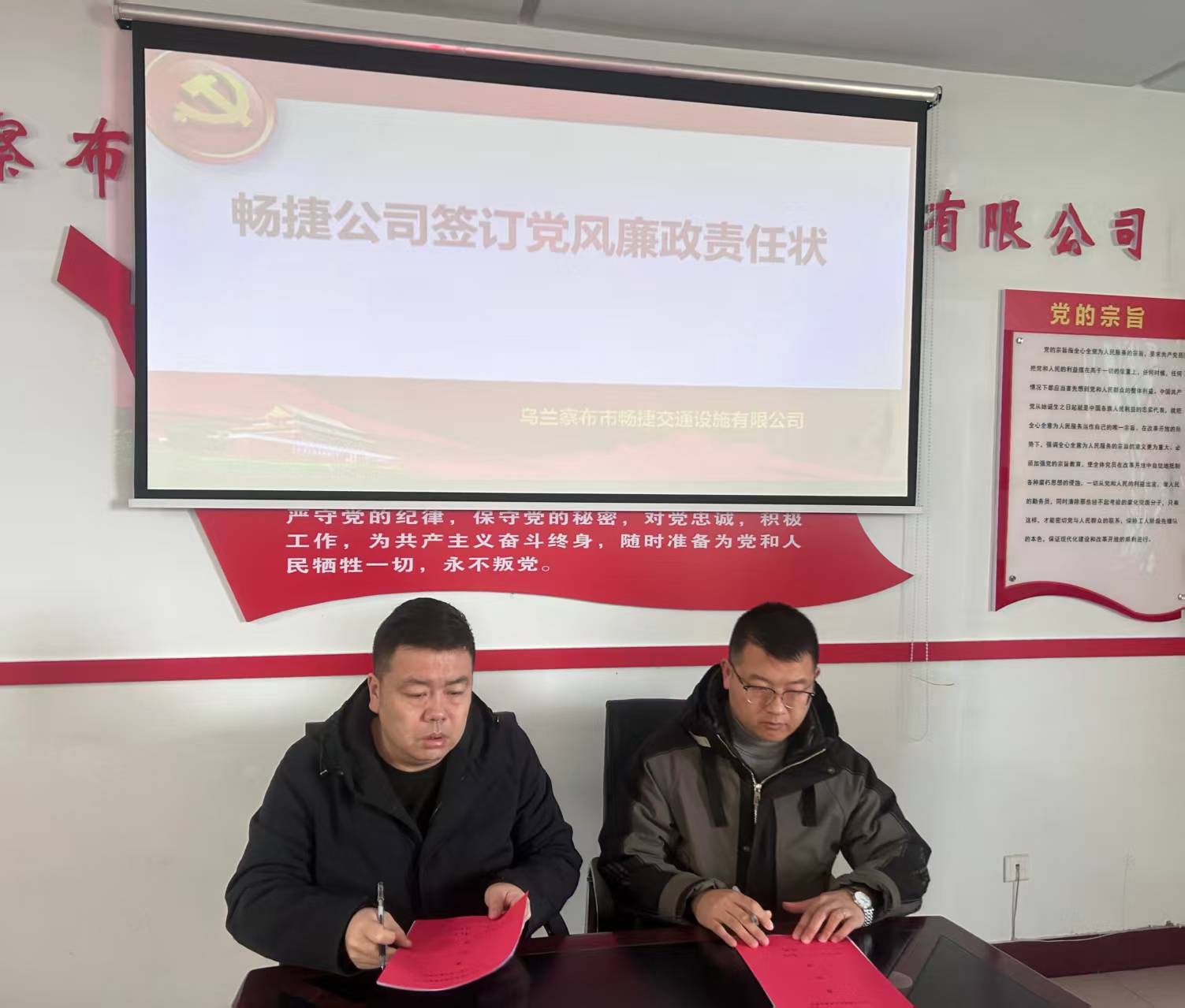 为深入贯彻全面从严治党要求,压紧压实党风廉政建设主体责任,进一步筑牢干部职工廉洁从业思想防线。近日,畅捷公司召开2026年度党风廉政建设工作会议,组织签订《党风廉政建设责任状》,推动形成责任明确、层层压实廉政责任,拧紧廉洁从业“安全阀”。