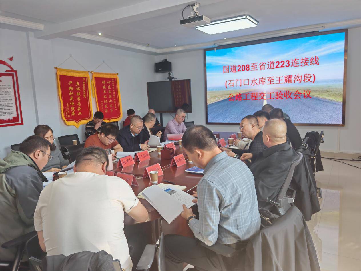 2026年3月16日,国道208至省道223连接线(石门口水库至王耀沟段)公路工程成功通过交工验收,正式达成通车运营条件。交投集团党委委员孔祥军负责主持本次交工验收会议,市交通运输局、市交通建设工程质量监测鉴定站、项目建管办等各参建单位的相关人员均参与了此次会议。