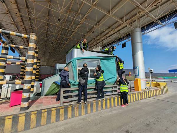 随着冬季的到来,气温逐渐降低,为确保收费员能够在温暖舒适的环境中工作,同时保障收费设备的正常运行,天路公司小红山收费所为票厅安装保暖罩。