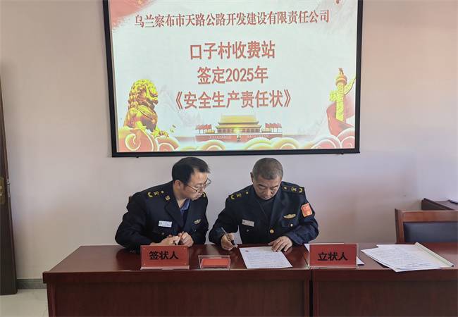 安全生产是一切工作的基石,为全面落实安全生产责任制,提升员工安全意识,有效防范各类事故,同时保障员工上下班交通安全,天路公司口子村收费举行2025年安全生产责任状签订仪式。。
