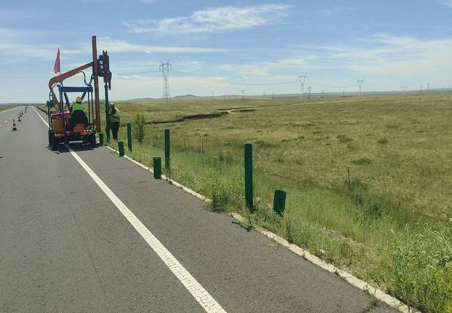 近日,金达公司参建国道331线艾勒格庙至乌华敖包段护栏工程进行施工。