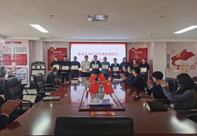 为树立标杆,激励全体员工凝心聚力、再创佳绩,金达公司于2月11日隆重举行2025年度优秀员工表彰颁奖仪式。公司领导班子、各部门负责人及员工出席活动,共同见证荣耀时刻。